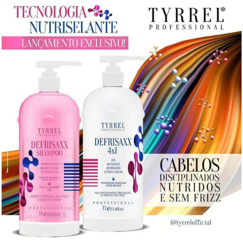 Tyrrel Defrisaxx 2 Steps 1L is a high-performance organic straightening treatment, ideal for those who want straight, silky hair with intense shine.