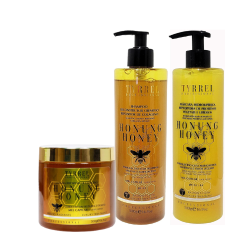 Tyrrel Honung Honey Complete Kit – Shampoo + Hydrolipidic Mask + Collagen Replenishing Mask – Intensive Reconstruction, Nutrition and Revitalization
